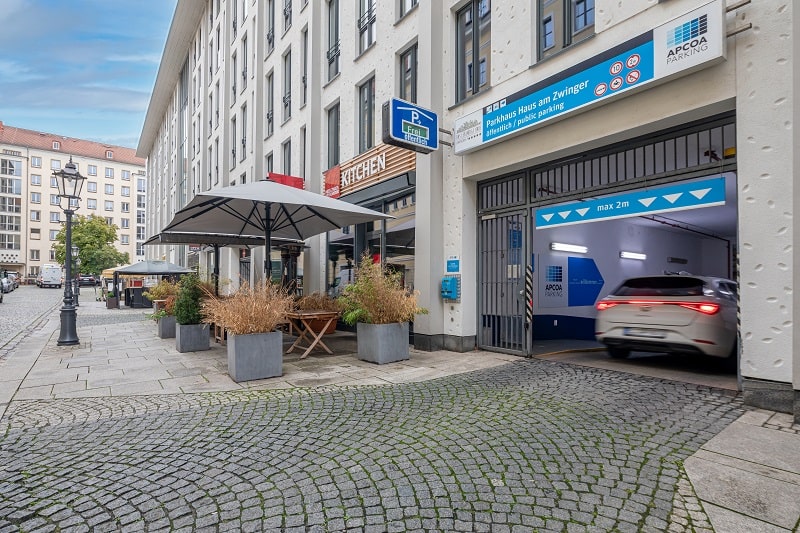 Parken im Parkhaus Haus am Zwinger, in der Nähe von Dresdner Zwinger, Neumarkt und Frauenkirche, sowie Schloss, Semperoper und Brühlsche Terrasse. In diesem Parkhaus können Sie einen Stellplatz bzw. Dauerparkplatz mieten. Dauerparken möglich